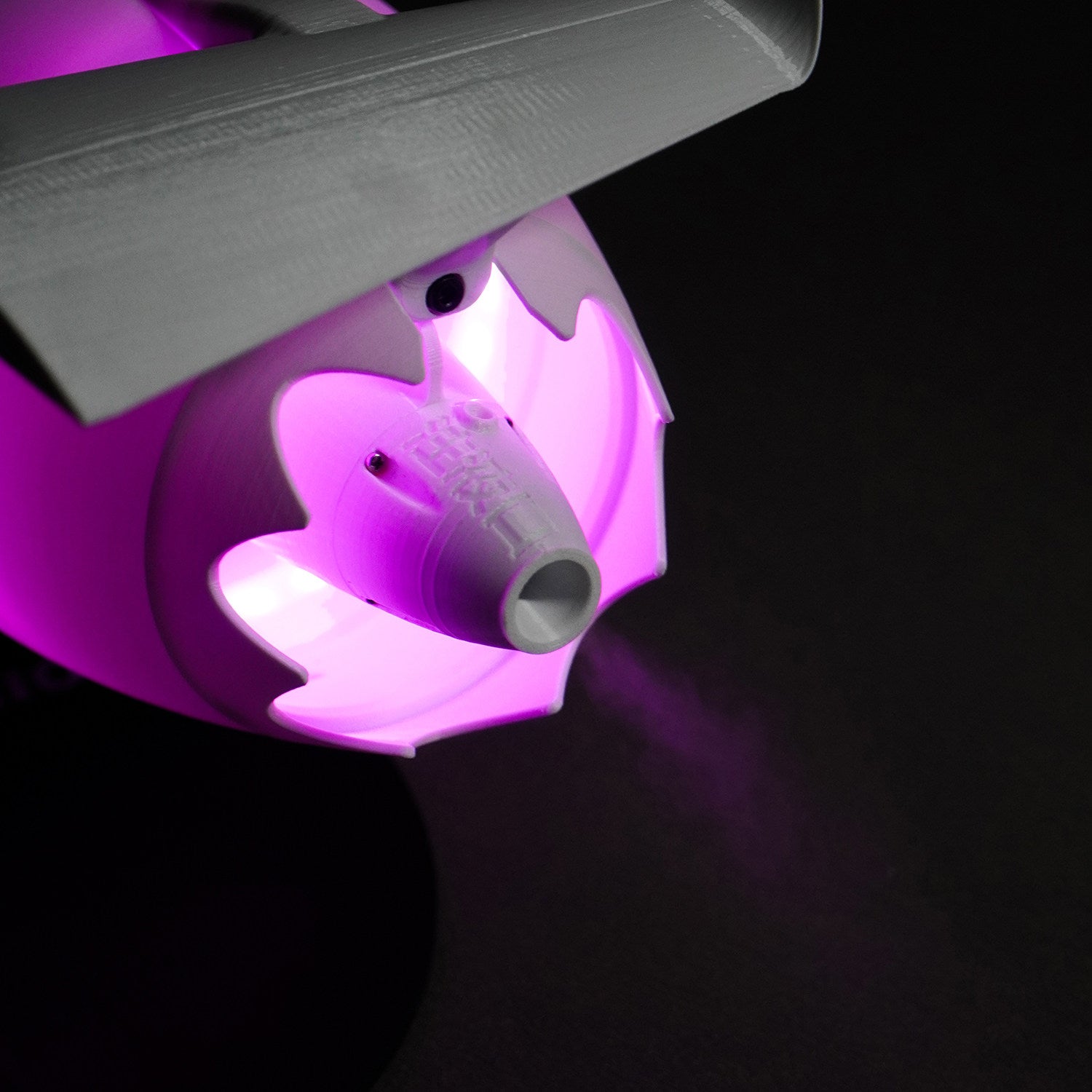The model features 8 adjustable LED lighting modes, creating a striking visual effect in different environments. The wind speed is controlled via a push-rod adjustment system, allowing smooth and precise airflow control. It also supports a mist spray function, enabling users to add fragrances such as perfume or air freshener for enhanced atmosphere (liquids not included).